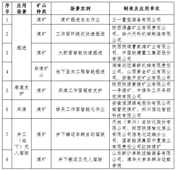 长征网址:《矿山领域机器人典型应用场景公示名单》公布